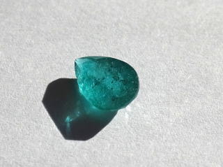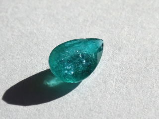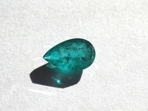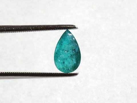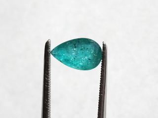 | インクルージョン等があり、光に当たるとキラキラしています。 グリーンの色が濃いです。透明感も感じられます。 こちらの石は品質の善し悪しというよりもインクルージョンも含めた大きさ、色を楽しんでいただきたい逸品です。 ブルーから少し離れてグリーンのパライバはいかがでしょうか? |