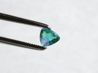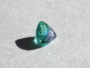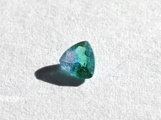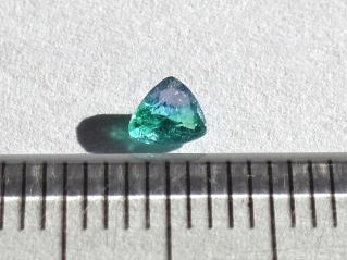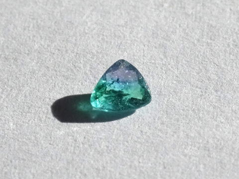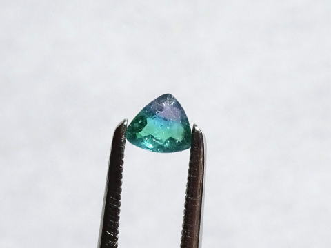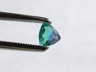 新入荷のパーティーカラードパライバトルマリン! こちらは珍しいトリリアント! パープル、ブルー、グリーンと色が広がっています。まさに「非加熱」! それぞれの色がしっかりのっています。 |