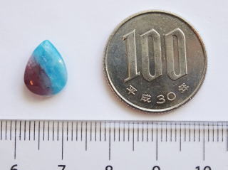 見事なパライバ2トンカラー! パライバの青みがとても良いです。 そして、バイカラーと言っても、半分以上がこの青。 くっきりと色が分かれているのも見事です。 色が詰まっているように見えますが、光にかざすと、グッと鮮やかさが増します。 ペアシェイプにカットされたルースに、斜めに色が変わりとてもスタイリッシュな雰囲気です。 |